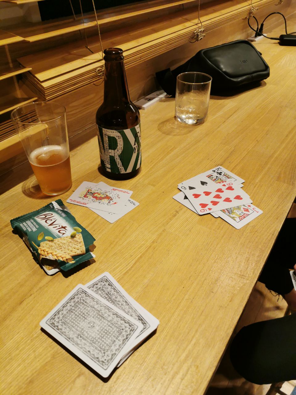 On décide d’aller boire un verre quelque part, je trouve une auberge de jeunesse où je bois une bière locale et Masha de l’umeshu, une liqueur de prune. On joue à la bataille corse, on mange des karaage (poulet frit), on rigole, puis on retourne au parking se coucher en espérant voir Fuji san au réveil…