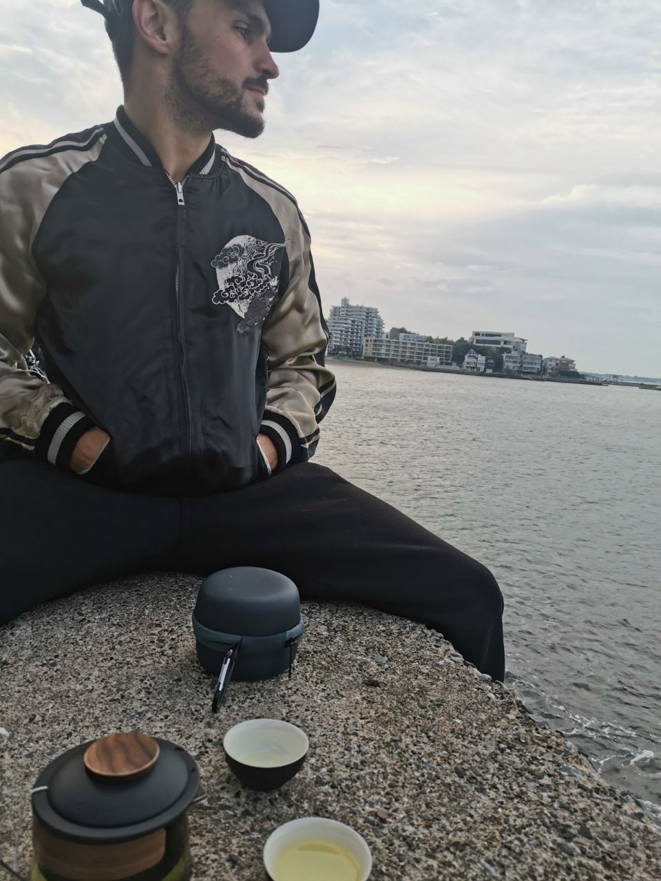 Des pêcheurs sont déjà au travail, rapidement dérangés par un groupe de 5 jeunes qui finissent leur nuit. On se recouche, puis on se lève avec le jour. On fait un tour, on regarde le paysage, on boit un thé sencha dans la théière de voyage offerte par ma sœur.