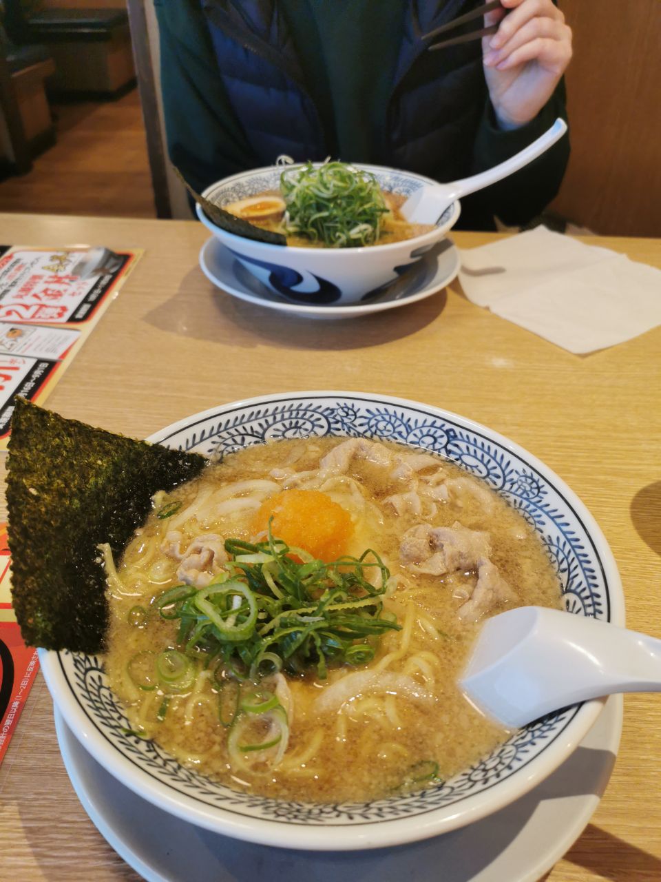 On a faim, on sait pas trop où manger car la nuit tombe vite et on ne veut pas perdre trop de temps sur la route, déjà bien assez longue. On ne veut pas non plus payer un énième parking, sachant que ceux des restaus sont gratuits. On trouve un ramen shop sur le bord de la route, pas cher. On commande avec une tablette sur la table, on nous amène en 2-2 nos repas.
